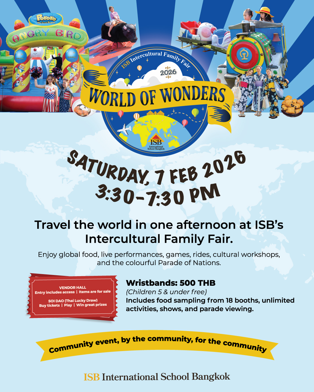 If you don't have plans for this Saturday yet... pack your (imaginary) bags and get ready to travel the world! George invites everyone to experience the Intercultural Family Fair (IFF) 2026, also known as the "World of Wonders," hosted at ISB International School.