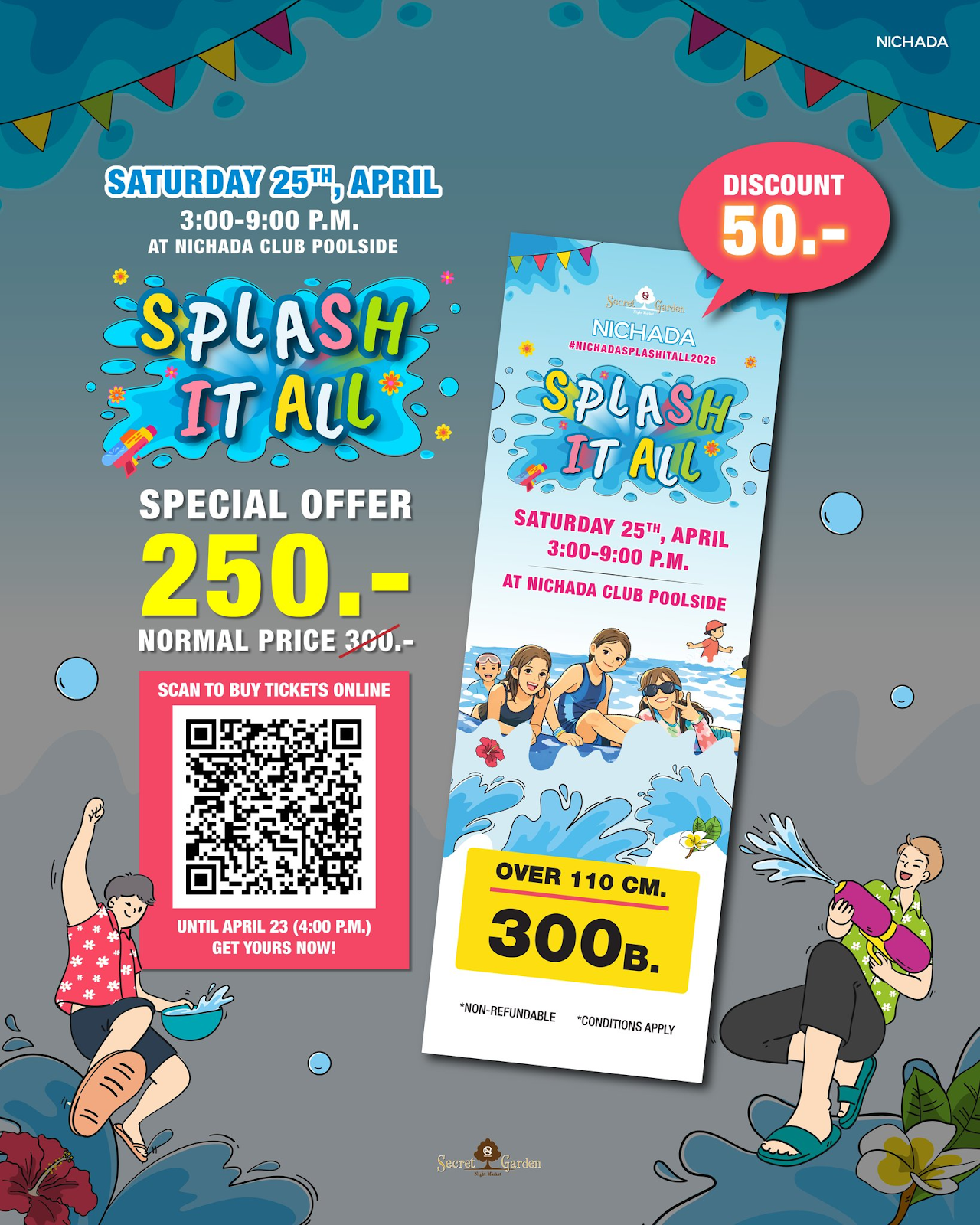 The fun doesn’t stop there! Continue the Songkran celebration with the Nichada community at #NICHADASPLASHITALL2026. Get ready for an epic day featuring a Foam Party, Water Slide, Water Attractions, and the Splashdown Showdown.
